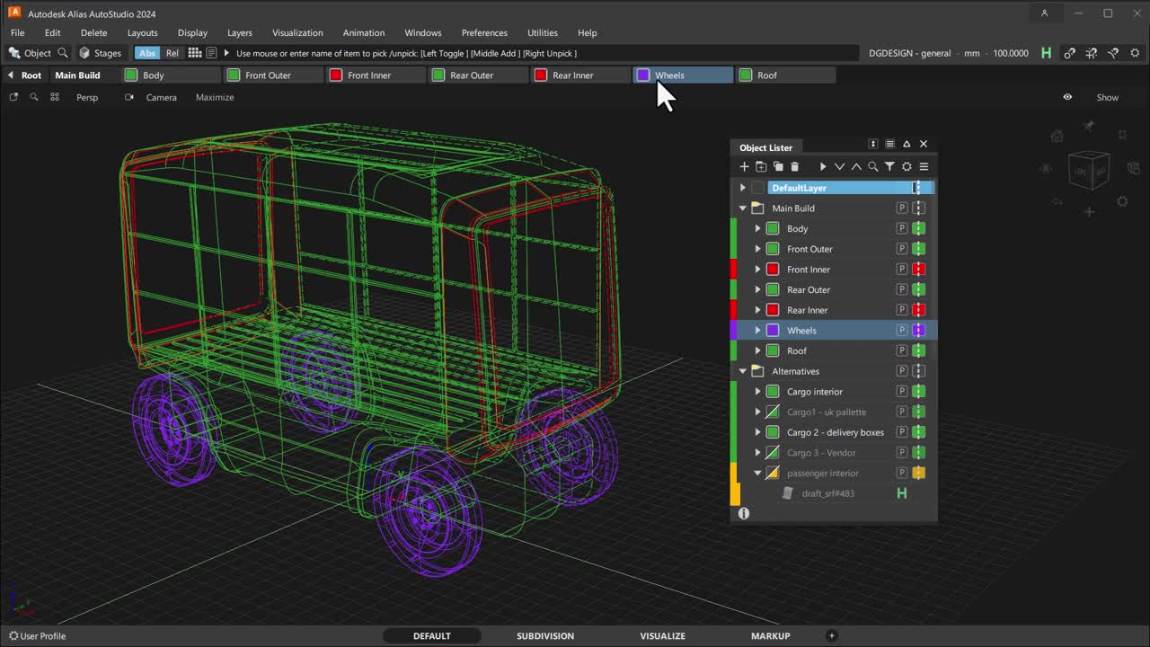 Shows or hides the Layer Bar in the viewport below the promptline. Use the Layer Bar to access, create, and manage your layers, as well as complete other layer-based tasks like you would with the Object Lister.