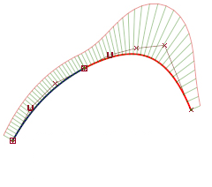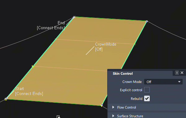 - End - The second CV follows the draft angle. The height of the crown is the same, but the change in surface shape appears at the end.