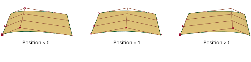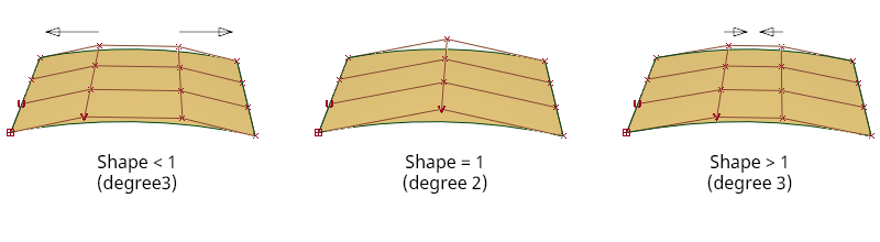 Changing this value adds a second row of CVs (degree 3 surface). The position of the centre rows of CVs is determined by the value greater or lesser than 1: