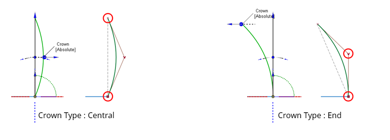 - Absolute - The crown height is an absolute value. Creates either a degree 2 or degree 3 surface depending on the Crown Shape setting.