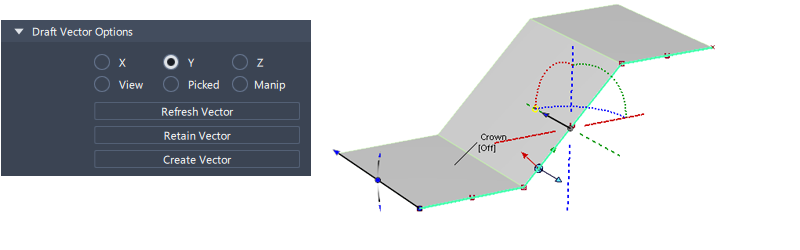 Where a surface tool would normally create a straight-line surface (for example Skin or MSDraft), the Crown option lets you add additional shape: