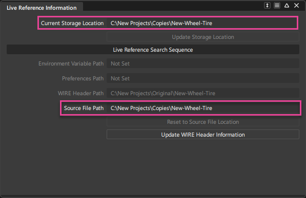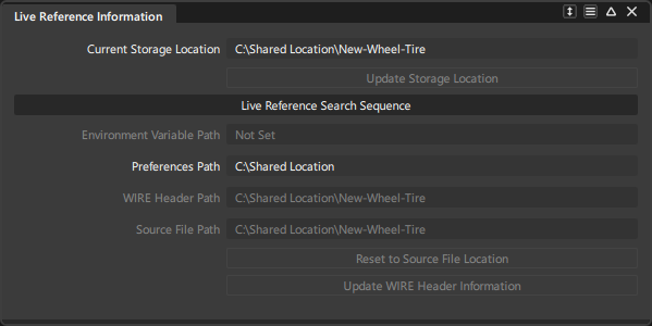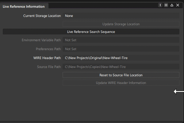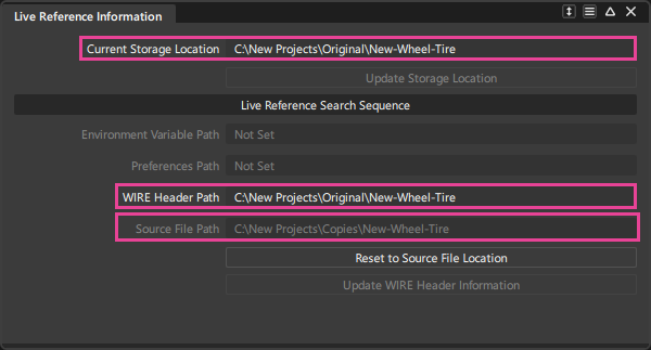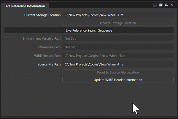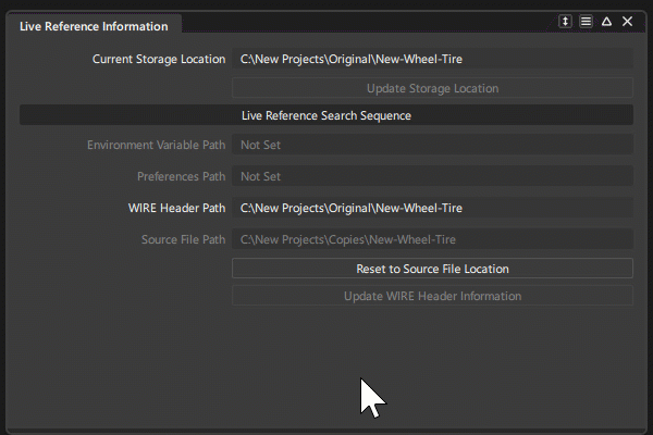 - Source path location - If VRED is unable to locate the Live Reference using any of the above locations, it goes the directory of the source .wire file and attempts to load the data from there.