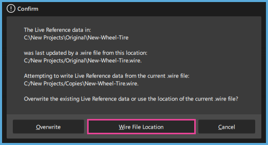 - Resolve stale paths - When .wire files are moved or shared, the stored path may no longer be valid, causing Live Reference data to be in an unintended location.