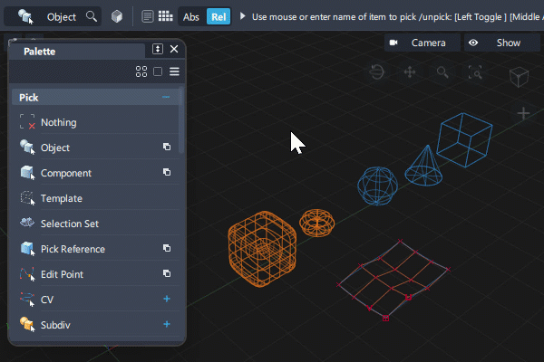 - Use Pick Nothing before using a modelling or editing tool. This ensures that there are no objects out of view accidentally selected, in which they would be inadvertently affected by the tool.