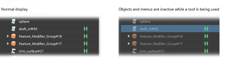 - Suspend - Temporarily suspends updates of construction history to improve performance. Select again to re-activate history updates.