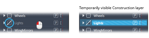 This is displayed with a different construction layer highlight with faint diagonal lines and with the visibility icon shown as off, even though the layer is visible.
