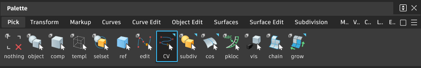 Picks or unpicks CVs on curves, NURBS objects and subdivision objects. If a CV is already picked, hold the Ctrl key and press the arrow keys to pick surrounding CV, edit points, hulls or blend curve control points one at a time.