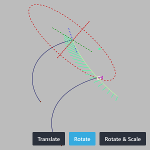Note: Currently, the only way to go back to using the plane of the curve as plane of rotation is to re-enter the tool, click the curve and then click the Rotate button again.