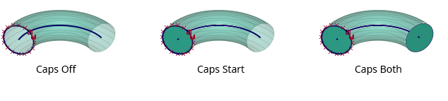 Caps can be created at the ends of the surfaces only if the profile shape is a single, closed, planar curve.