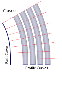 - Closest – The Extrude Pivot is the endpoint of the path curve closest to the bounding box of all the profile curves. This is best illustrated with multiple profile curves: