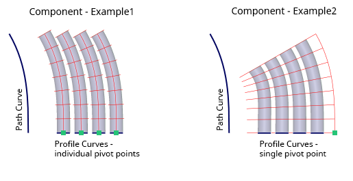 - Component – The Extrude Pivot is at the pivot point of each profile curve.