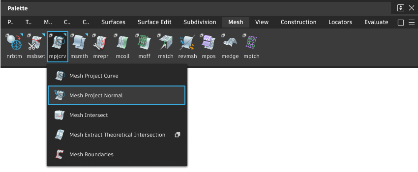 Projects a curve normal (perpendicular) to one or more meshes. The result of the projection is a degree 1 NURBS curve on the mesh.