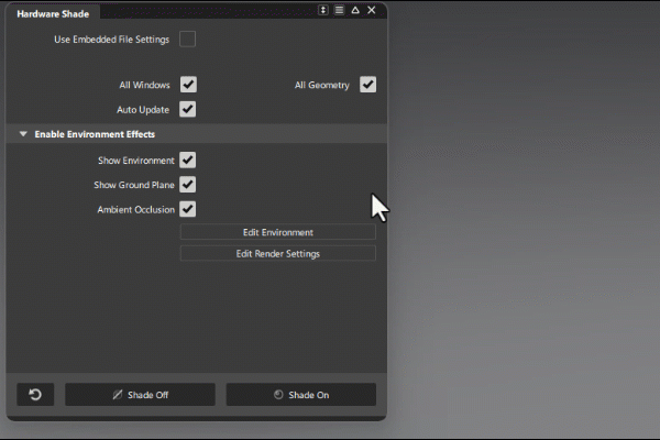 - Manipulate - Activates/Deactivates the interactive environment texture manipulator in the viewport.