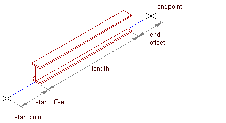 offset the beam on its extruded axis at the start point of the beam enter a value for Start offset. A positive value shortens the beam on its axis, while a negative value lengthens the beam on its axis.