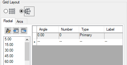 - To add the first bay to the grid, determine the desired angle (for example 15°) and click the corresponding value in the value list on the left. Tip: You can either directly edit the bay angle value after entering it, or you can edit the list of preconfigured default values.