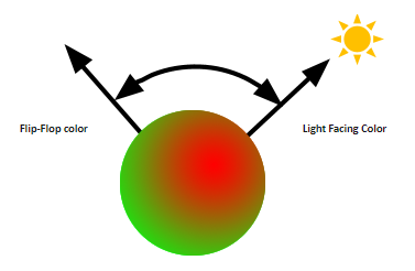 In the example below, the Specular Flip Flop color has been set to green and the Light Facing Color to red.