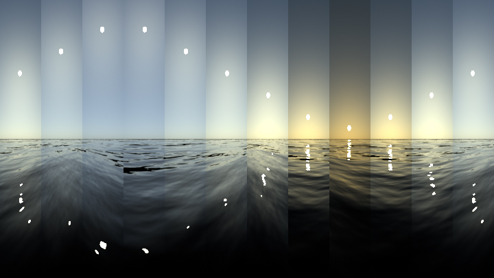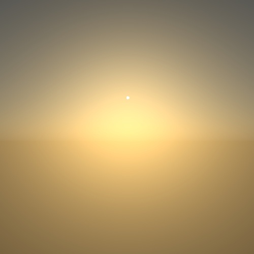 This shader implements a variation of the Hosek-Wilkie sky radiance model, including the direct solar radiance function. You can plug it into the environment, or to the color input of a Skydome Light (which benefits from efficient importance sampling, sending more rays to bright areas around the sun) or add it directly as an environment shader. Currently, this shader is invisible to GI diffuse and specular rays. To use it as a light source you must attach it to a Skydome_Light with sufficient resolution to capture the small solar disk.