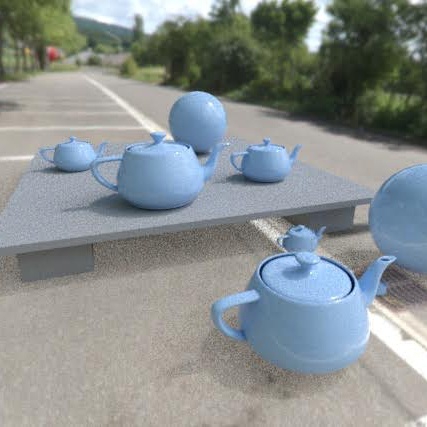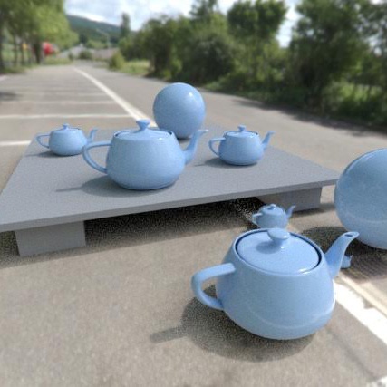 samples: 1. Shadows on the floor plane (shadow matte) look poor compared to those on the platform. | samples: 2. Shadows on the floor plane appear the same as on the platform. |