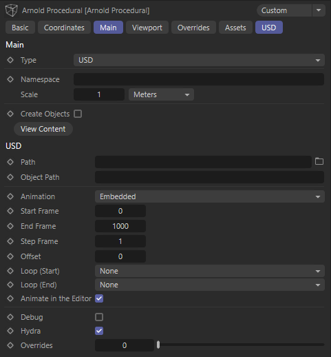 - file sequence: In case of exporting animation to USD from the Arnold Scene Export dialog, the animation is written to a file sequence, which can be loaded in this mode.