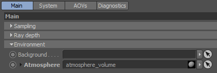 Once you have created the material, drag it onto the Atmosphere attribute in the Environment section of the Main Arnold Renderer settings.