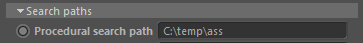Defines a location to search for procedural nodes that load ass files (or obj or ply files). C4DtoA will search for files referenced by procedurals (e.g. ASS, obj, etc.) in the folders defined by the Procedural Search Path. For example, if a file called' forest.ass' is saved in a folder in C:\temp\ass you can define this folder as the search path and give a relative file name in an Arnold Procedural: