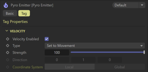 Velocity channel must be enabled in the Pyro Emitter and Pyro Object.