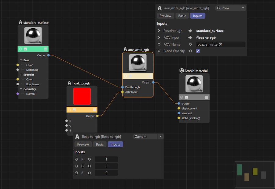 shader (for example, "puzzle_matte_01"). - Connect your surface shader to the Passthrough input of the