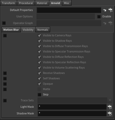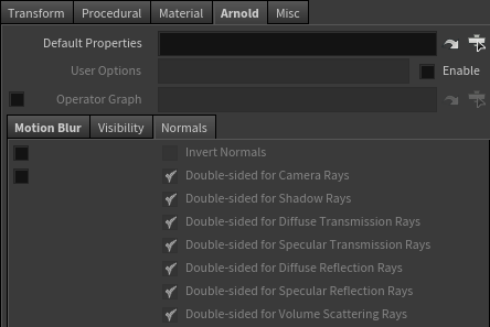 Only a subset of the geometry properties can be overridden. Please refer to the Motion Blur, Visibility and Normals property help pages for a full description.
