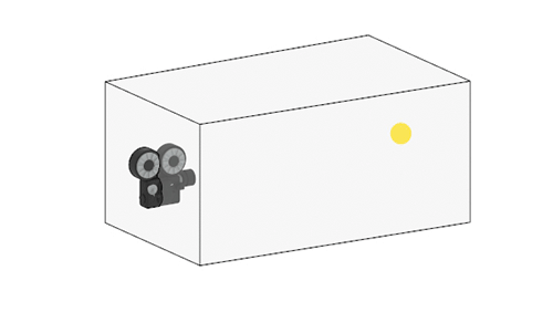 Create a camera and position it at the other end of the cube (inside it) pointing at the point light.