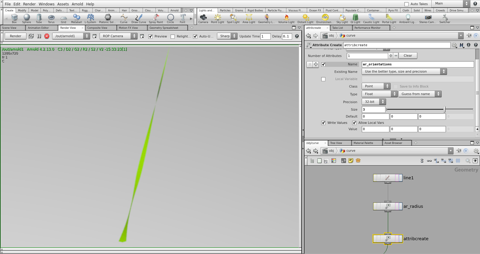 Note that Arnold specifies a radius for curves but the traditional Houdini width and pscale attributes are diameters. When using width or pscale, HtoA will half the value entered to use as the radius.