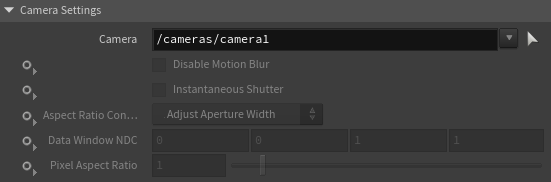 This section allows you to select the camera to use for rendering, along with data window and pixel aspect ratio.
