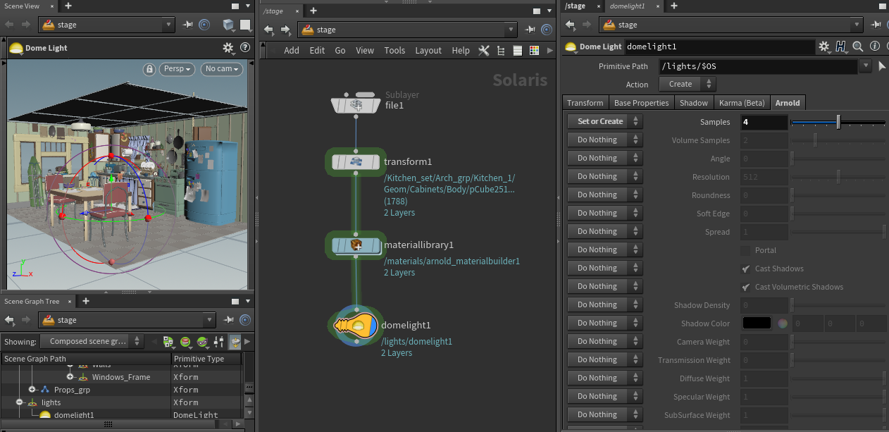 This beginner's tutorial shows you how to use the Arnold renderer in Solaris. It shows how to render the kitchen USD file with Arnold in the LOPS context.