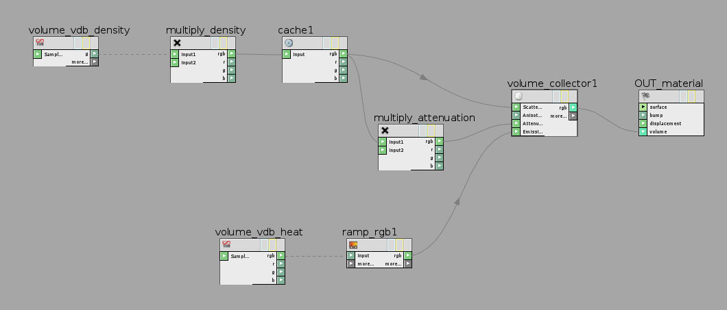 - Create another Volume OpenVDB node and add the VDB file. In grid this time select heat.