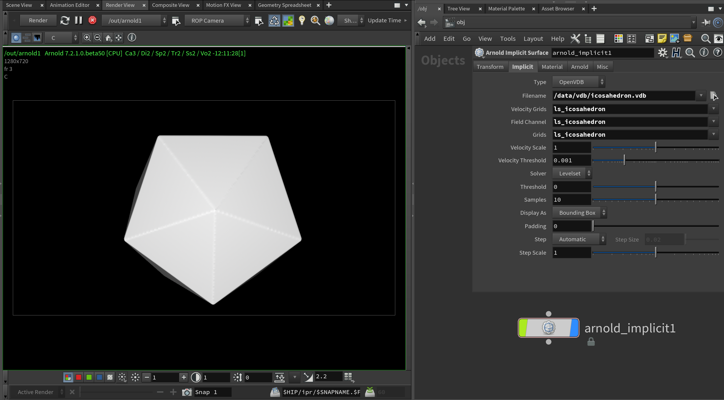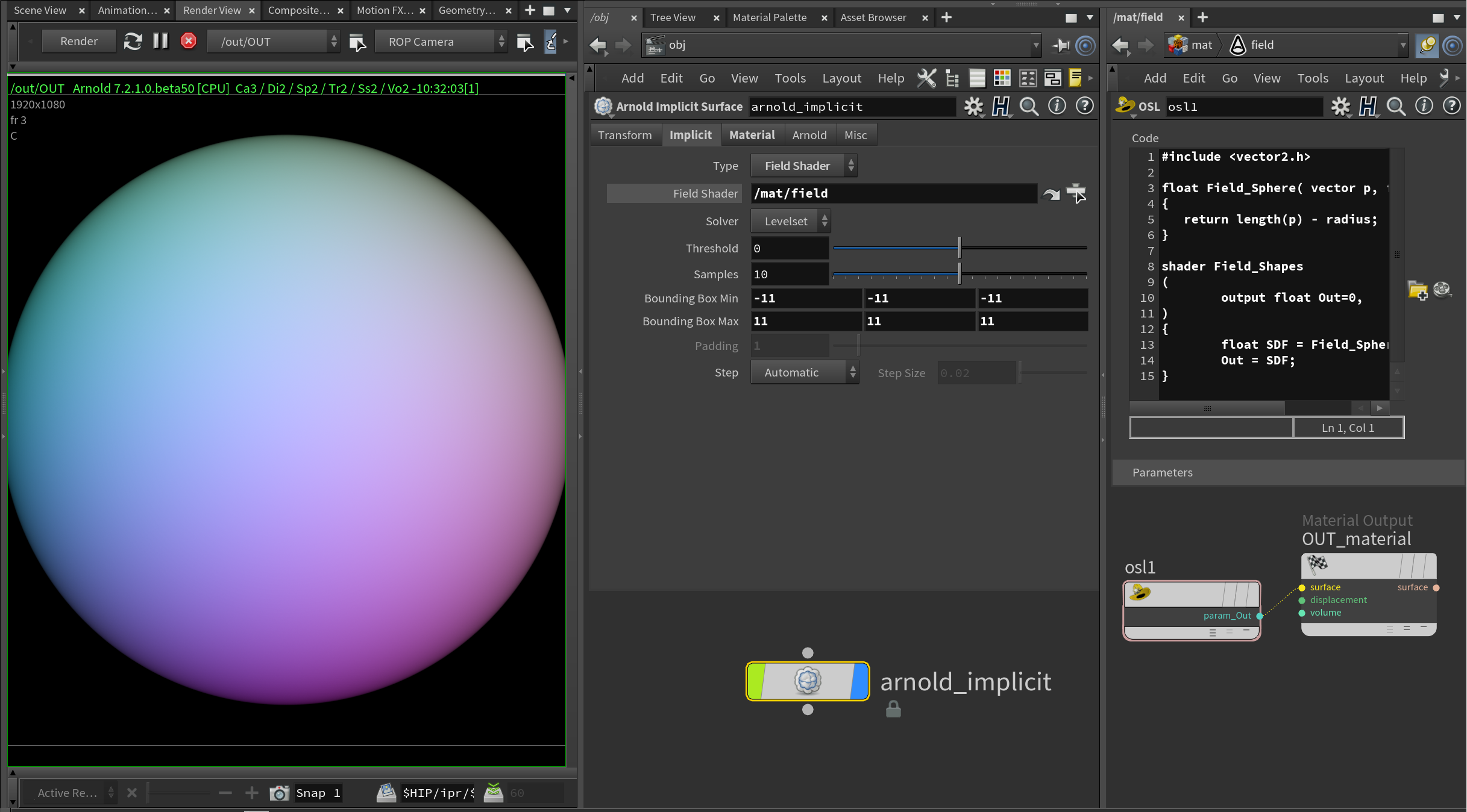 | OSL shader used as input data for Volume Implicit via the Field Shader parameter |