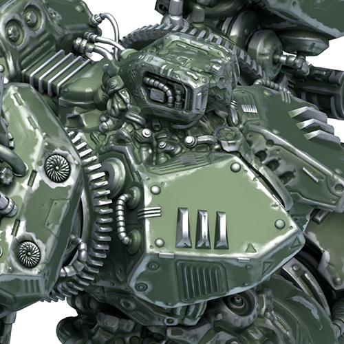 The Curvature shader is an easy way to add detail and realism to your shaders. In this short tutorial, we will use the Curvature shader to create a wear and tear shading effect. It will be used to represent where the edges of a hard surface are scraped on the model of a mech. Notice in the image above how the edges of the paint appear worn off, exposing the metal underneath.