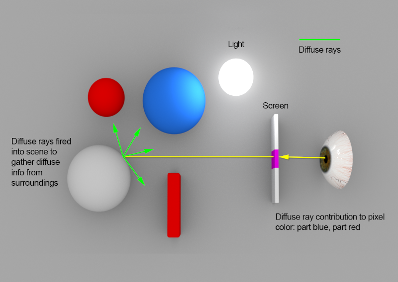 Diagram showing how Diffuse rays are propagated in an Arnold render