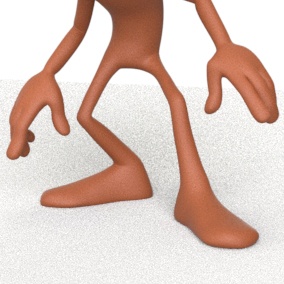 The same noise problems described earlier can occur with direct and indirect rays. Noise from direct light sources usually appears in specular highlights or in large, soft shadows from area lights. If this is the case, the number of light samples needs to be increased. The images below show the difference in the shadow noise when increasing the number of light samples from 1 to 3.