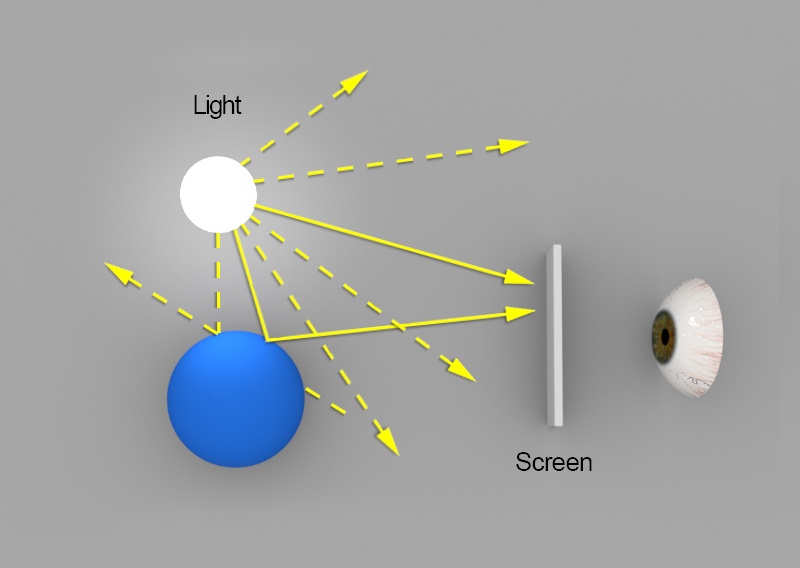 Direct lighting rays can be described as rays which deal with lights. These rays travel from a position in the scene toward the various light sources. These rays determine if a surface is in shadow, and if not, lighting information can be calculated.