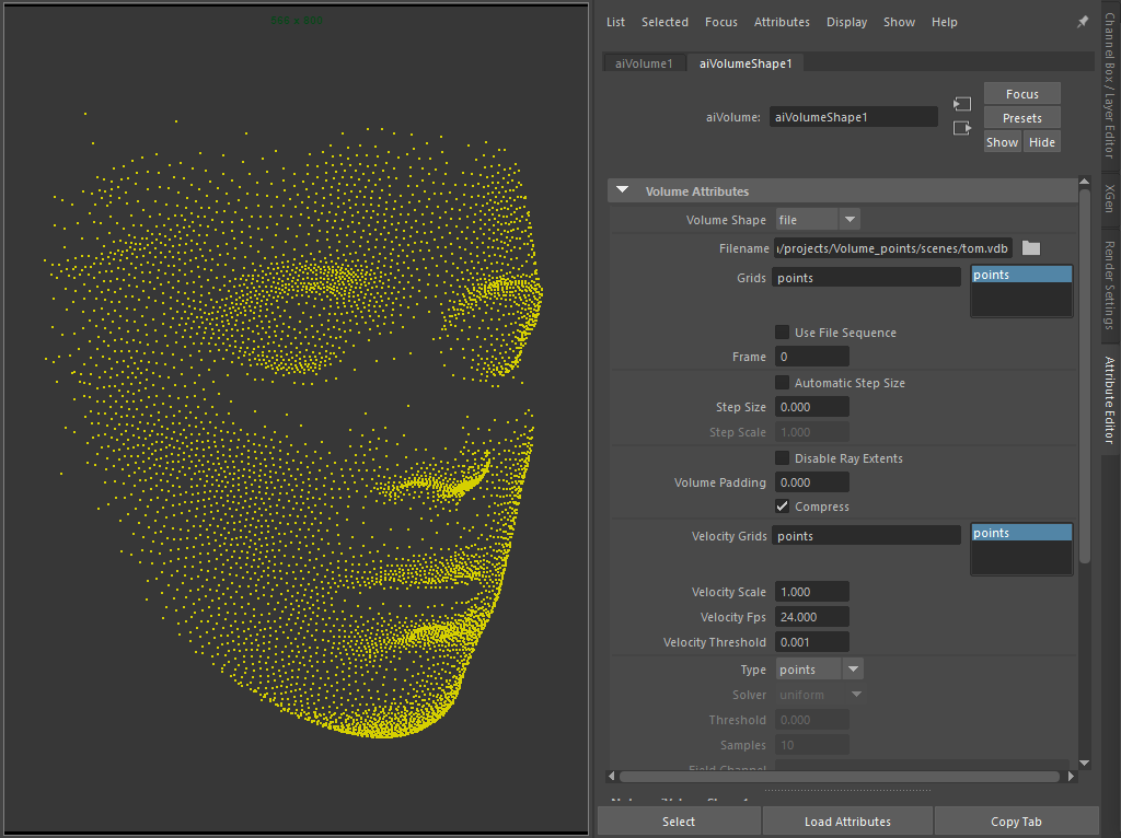 - OpenVDB points support in the aiVolume node - You can now load VDB files that contain points data and render them as Arnold points primitives (MTOA-2234)