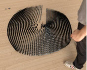 The images below show varying Twist Width values with primitives generated both Randomly across the surface and In uniform rows and columns: