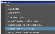 - Select the polygon plane and go to Generate> Create Description... This will open up the Create XGen Description below. Choose Custom Geometry/Archives (use for any model you have created). Leave the other settings at their defaults and click Create.