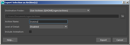 - With the domino model selected go to *Generate > Export Selection as Archive(s)...*