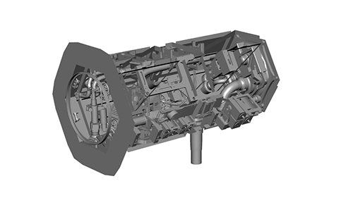 - Open the satellite scene file. You will see that it comprises an outer body, door, and interior (selected below).