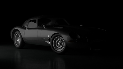 The scene is simply lit with a an area light (quad) representing large studio softbox lighting. A reflector has also been added to show reflections in the side of the car body.