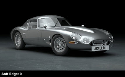 We can specify a smooth falloff for the edge of the light by using soft edge in the quad light. This creates a softer look to the specular reflections of the light in the car paint and windscreen.
