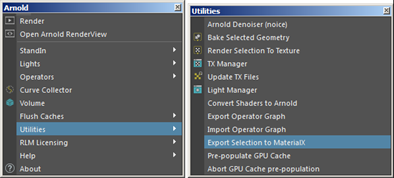 - First, select the robot geometry (whose shaders you wish to export) and go to Arnold > Utilities > Export Selection to MaterialX.