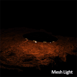 Fireflies appearing in the render (concentrated around the light and glossy specular metallic UFO material).