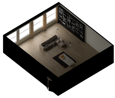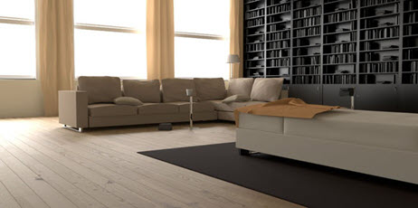 A common method for lighting an interior is to place area lights outside of the windows pointing into the room. Care must be taken with the size and position of the lights. If the lights are too close to the window frame it can cause areas near the windows to appear bleached out (see tone mapping below). A light sample value of 3 has been used in all of the example images.