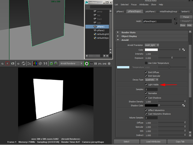 For each light, Arnold is tracing nine rays (thirty-six in total with four lights), versus nine for just one light. Therefore smaller lights will take longer to render than one large light. However, even though the number of light samples is the same (in this case three), there is more noise using just one large area light. This is more evident in the area around the bookcase.