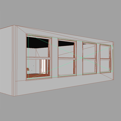 With windows that contain glass, the Quad Light should be placed in front of the glass so that Arnold does not need to deal with glass intersections. However, if the window is oddly shaped, then placing it right behind the window, so that the entire window is covered by the Quad Light would be the next easier option.